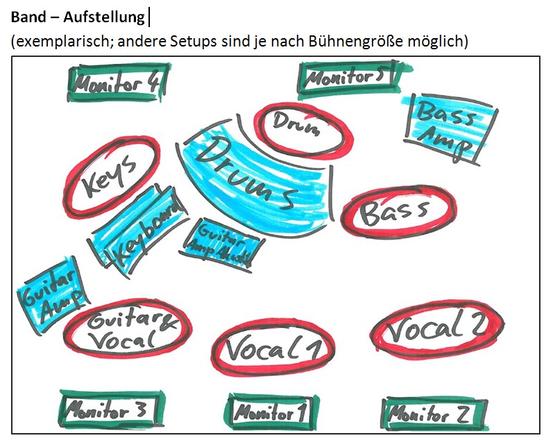 - Bühnengröße mind. 6x5m, leicht begehbar