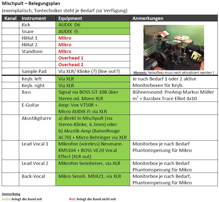 - Mikrofone laut Belegungsplan